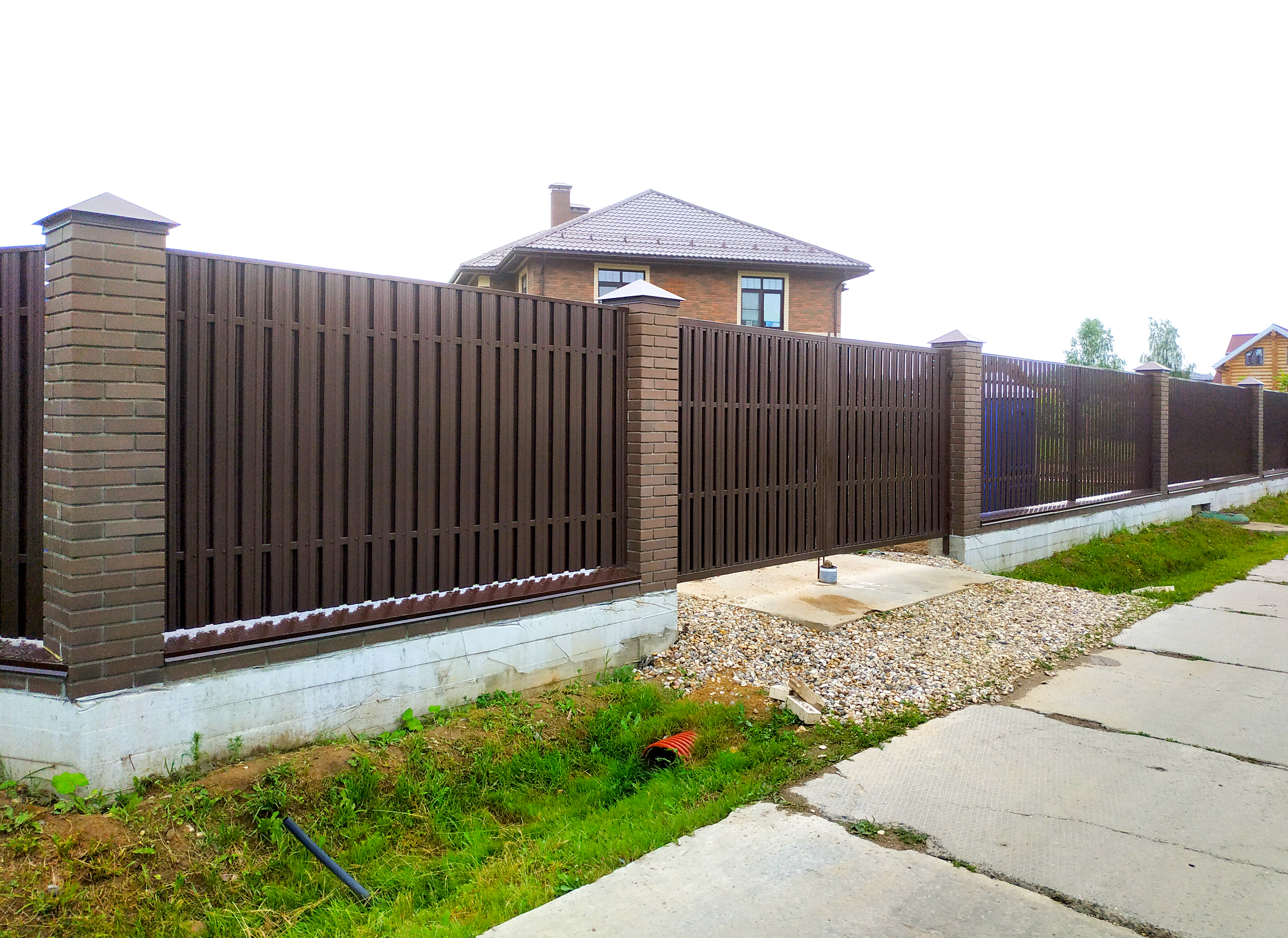 Заборы и ограждения из евроштакетника с кирпичными столбами 100 метров в Петушках