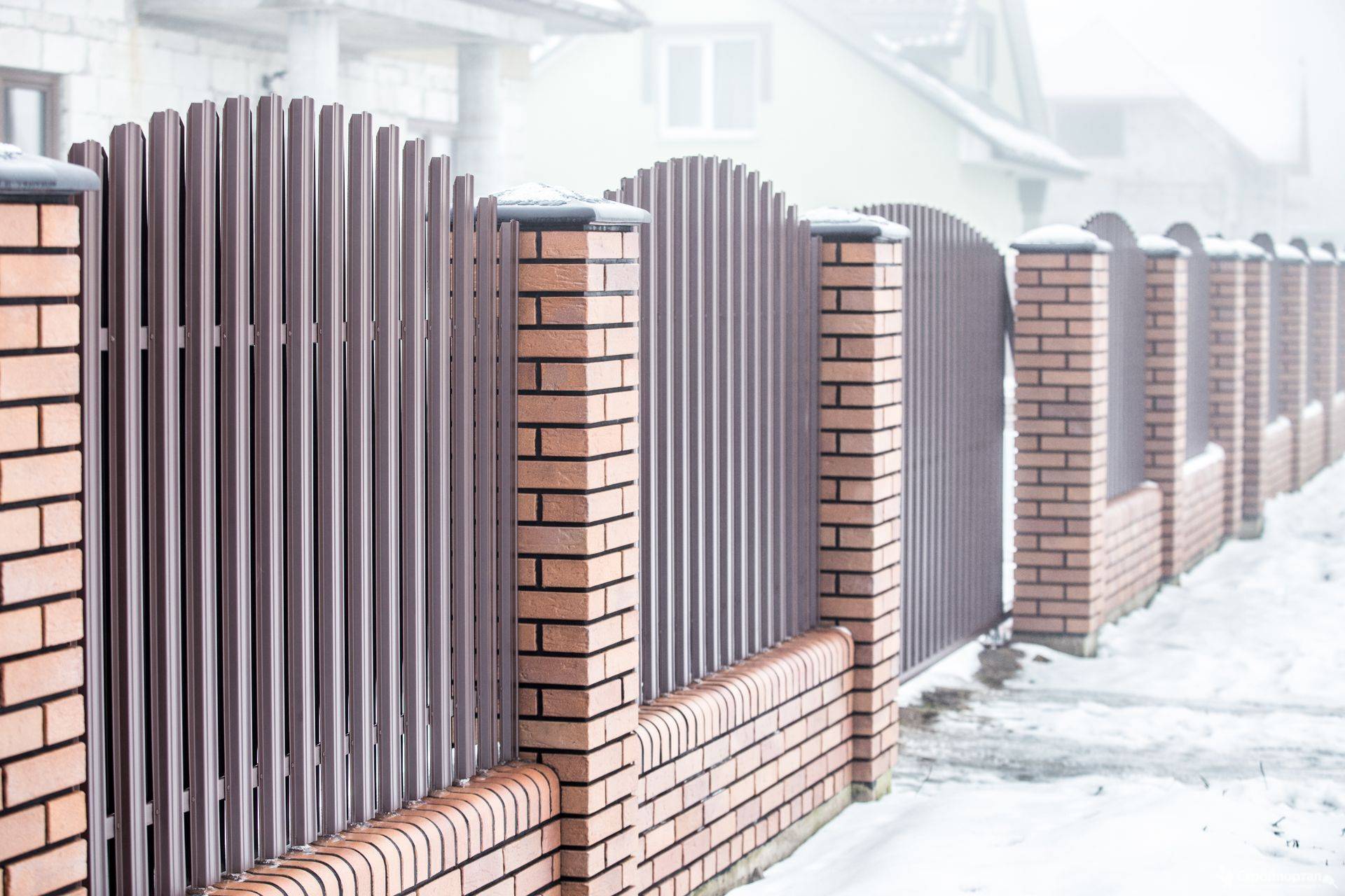 Заборы и ограждения из евроштакетника с кирпичными столбами 40 метров в Петушках