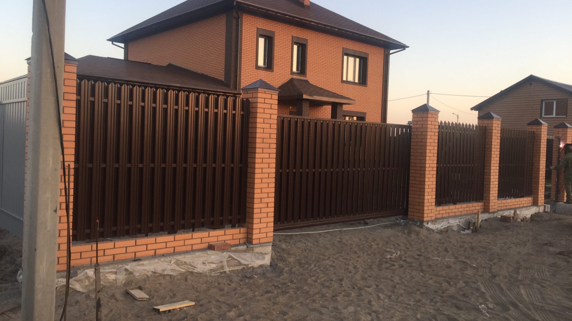 Заборы и ограждения из евроштакетника с кирпичными столбами 500 метров в Петушках
