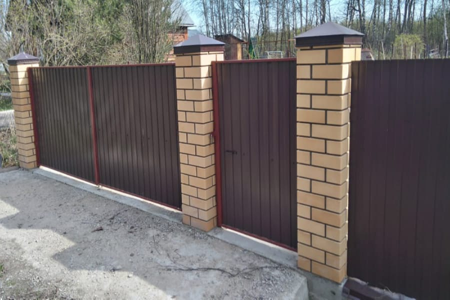 Заборы и ограждения из профнастила с кирпичными столбами 300 метров в Петушках