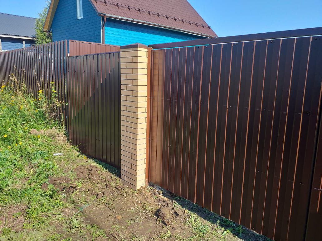 Заборы и ограждения из профнастила с кирпичными столбами 50 метров в Петушках
