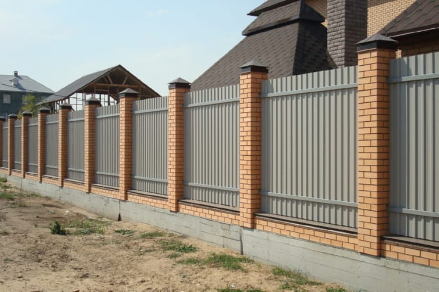 Заборы и ограждения из профнастила с кирпичными столбами 6 соток в Петушках